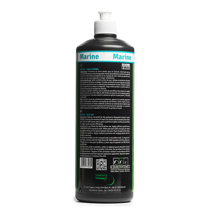 Pulimento de corte medio para el Gelcoat, destinado para su mantenimiento elimina restos de pequeñas marcas de oxidación y mantiene la superficie con brillo. El GB-2500 permite corte y brillo en un solo paso logrando un mayor rendimiento.